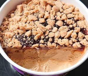 スーパーカップ はなやか紅茶は、上の方に紅茶クッキーが乗っていて、その下に紅茶ソース・紅茶アイス・ミルクティー風アイスと続きます。