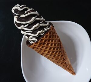 パリッテはパリパリ食感のチョコがアイスと合わさって、ワッフルコーンの中に入ってるタイプのアイスです。